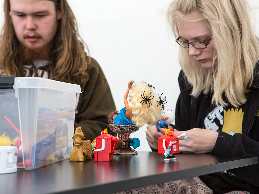 Våre formidlere tilrettelegger kunstundervisningen etter behov og klassetrinn. Vi vektlegger dialog, opplevelse og aktivitet, og har som mål å gjøre samtidskunsten tilgjengelig. Et besøk hos oss utvider elevenes visuelle og kommunikative kompetanse, enten gjennom våre utstillinger eller Gruvene skulpturpark.