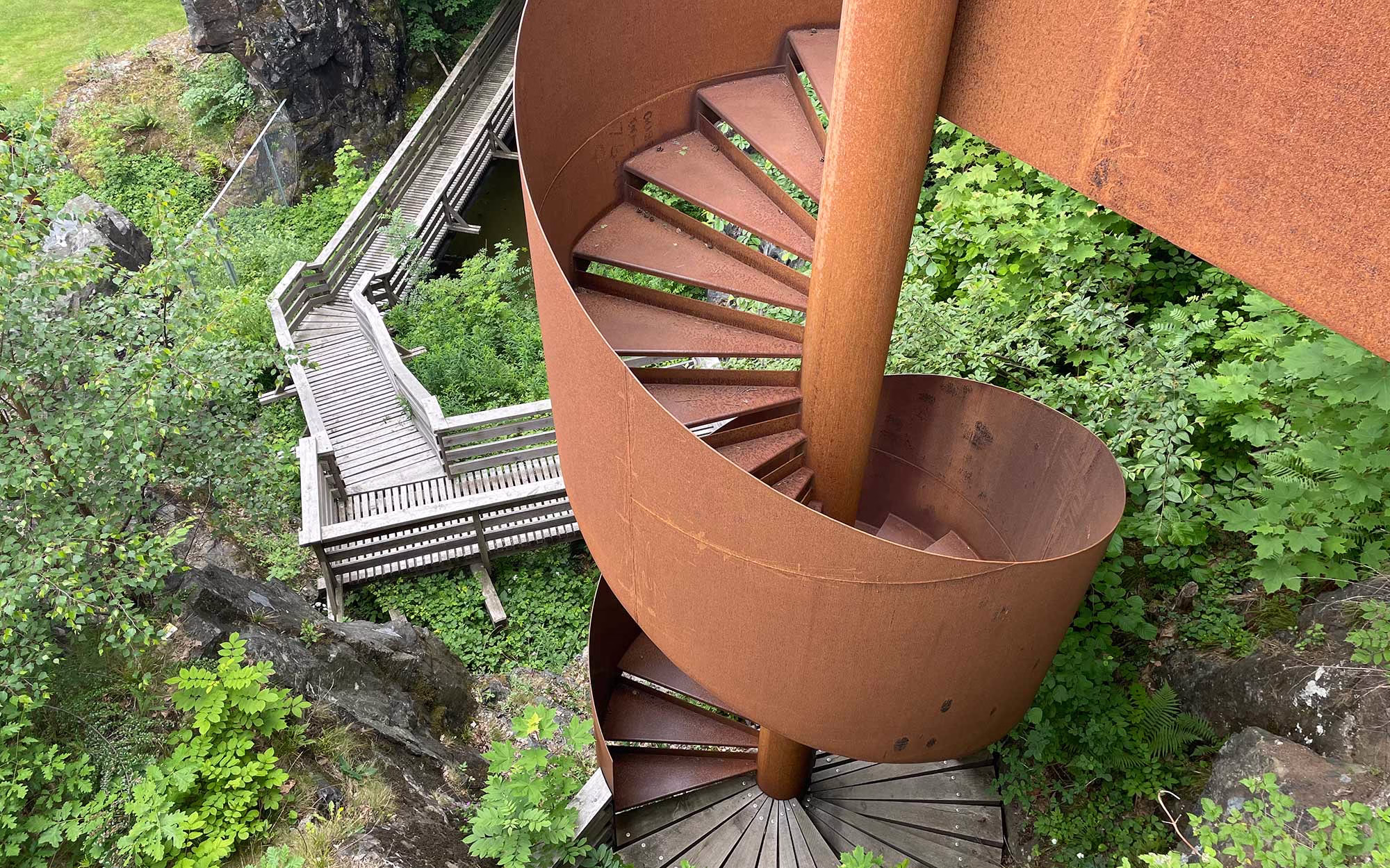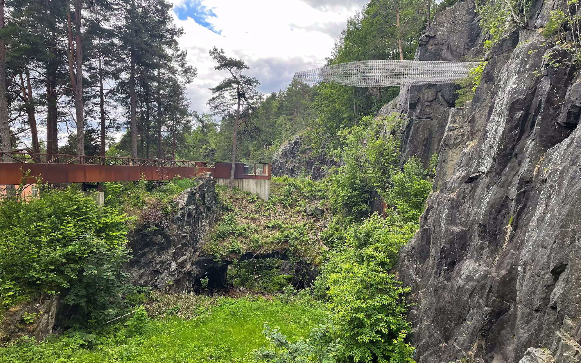 Traversatorie er et stedspesifikk verk, en arkitektonisk skulptur som skaper en dynamikk mellom det vertikale og horisontale. Til sammen danner dette et eget platå og en gangbro innover i dagbruddet. Konstruksjonen uttrykker en nær forbindelse med kulturlandskapet og er drevet av ideen om det «vernakulære»; en stedsegen arkitektur som etablerer koblinger til omgivelsene. Materialet er i hovedsak corténstål, et stål der rustprosessen i seg selv fungerer som en beskyttende hinne mot videre korrosjon. Stålet blir en markør for jernforekomsten som ble utvunnet fra berget, men lager også – bokstavelig talt – en bro mellom bygningskroppen og landskapet. Gjennom å fortolke topografien søker verket en dialog med landskapet, noe som kommer til syne gjennom gjentagelse av retningsdannelser og forsterkning av rom, med utgangspunkt i fjellets uttrykk.